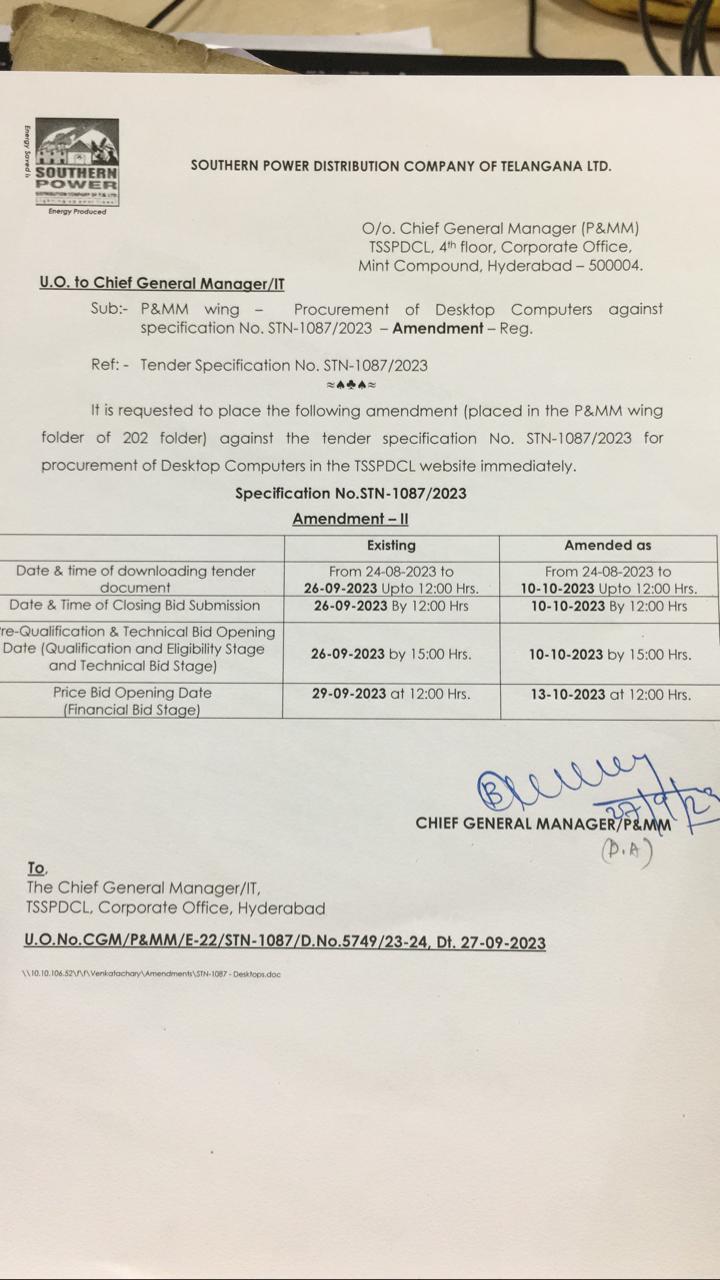 Amendment ? II TENDER SPECIFICATION STN-1049/2023