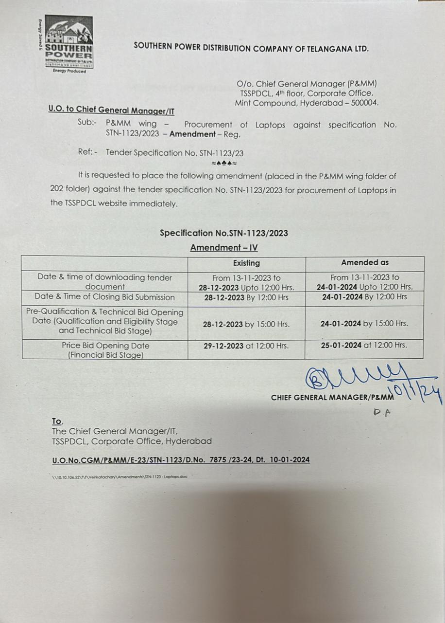 Amendment-IV TENDER SPECIFICATION No.STN-1040/2023