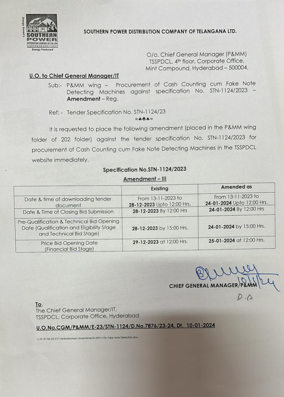 Amendment ? III TENDER SPECIFICATION STN-1040/2023